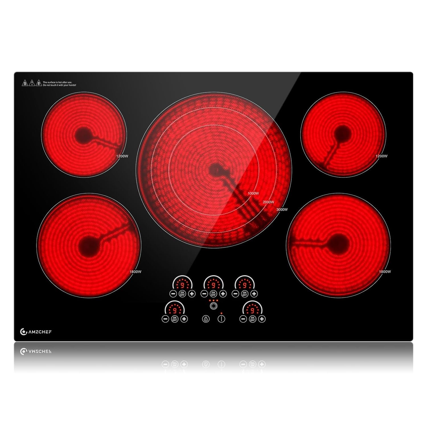 AMZCHEF Electric Cooktop 30 Inch,5 Burners Built-in Electric Stove Top,Max 9000W Ceramic Glass Countertop with Touch Control,9 Heating Level,Triple Zone,Safety Lock