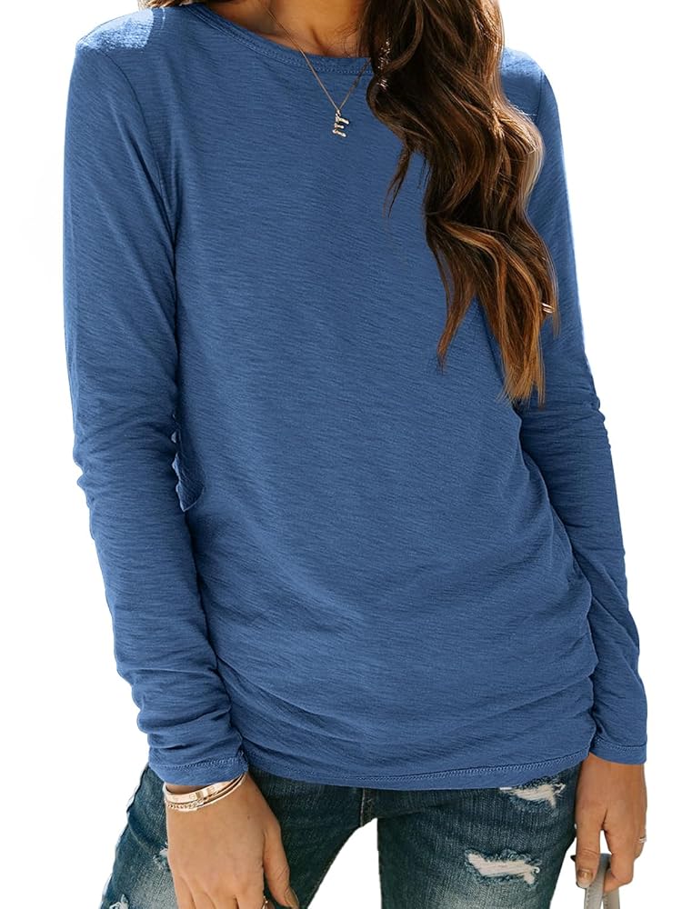 AUTOMET Womens Long Sleeve Round Neck Shirts Basic Tee Fall Tops Outfits Clothes 2024