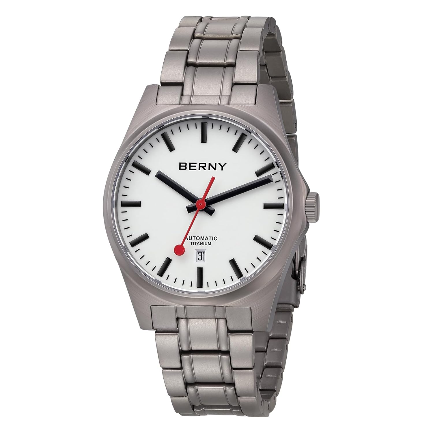 - Lightweight and Durable Titanium Construction: This unique men’s wrist watch is the first model in the BERNY Railway Clock series to feature titanium, and also the inaugural piece in the BERNY titanium watch collection to incorporate a combination of brushed, sandblasted, and polished finishes. Lightweight titanium offers exceptional durability and corrosion resistance. The screw-down case back further improves its longevity and protection.