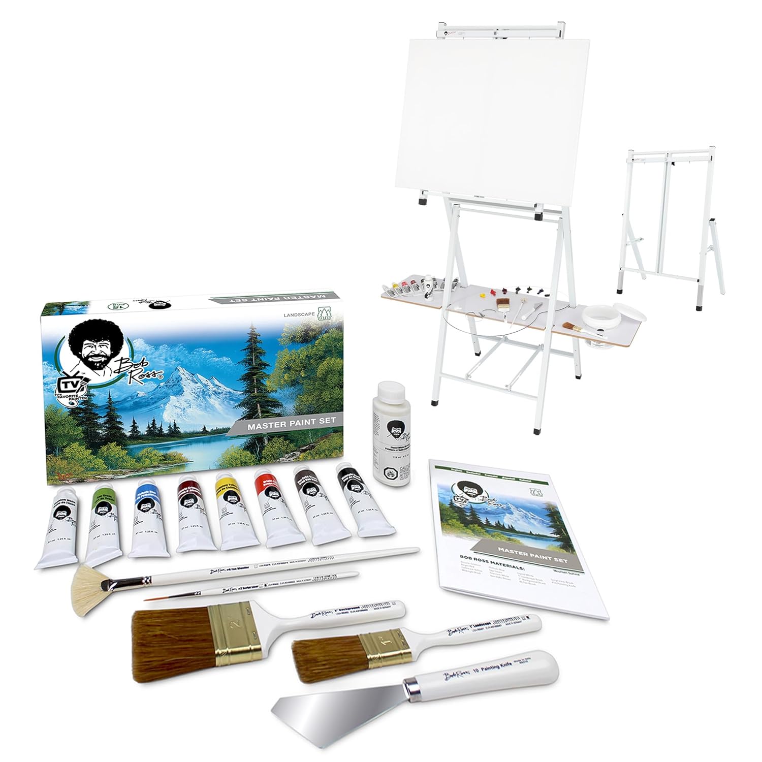 - As seen on the Bob Ross Netflix and TV Series! The 2-in-1 White Studio Easel and Master Oil Paint Set!