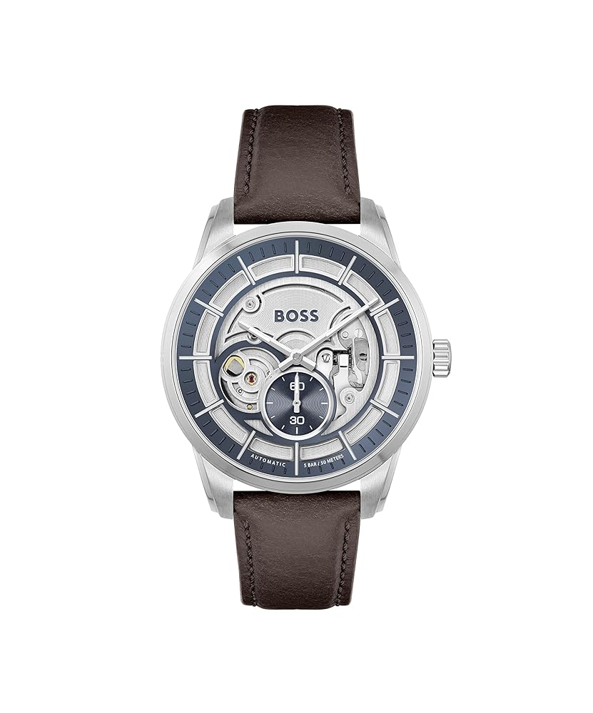 The BOSS Men’s SOPHIO 42 mm Quartz Multifunction Watch is a sophisticated timepiece designed to meet the demands of the modern professional. Crafted with precision, this watch features a durable stainless steel case and a rich brown leather band that exudes timeless elegance while providing comfortable wear throughout the day. Its 42-millimeter round dial is protected by a mineral window, ensuring clarity and resistance to everyday scratches. The striking blue dial offers a clear analog display with multifunction capabilities, including day and date indicators, allowing the wearer to stay organized and punctual effortlessly. Powered by reliable quartz movement, this watch guarantees accurate timekeeping, eliminating the inconvenience of frequent adjustments. The stationary stainless steel bezel adds a refined touch, complementing the overall design without compromising functionality. With a water resistance depth of up to 100 meters, the SOPHIO watch stands up to splashes, rain, and brief immersion, making it a versatile accessory for various environments and activities. The tang buckle clasp secures the watch firmly on the wrist, ensuring it remains in place during daily routines. By combining durability, style, and practical features, the BOSS SOPHIO watch addresses the need for a dependable and elegant timepiece that seamlessly transitions from professional settings to casual occasions, enhancing the wearer’s confidence and punctuality.