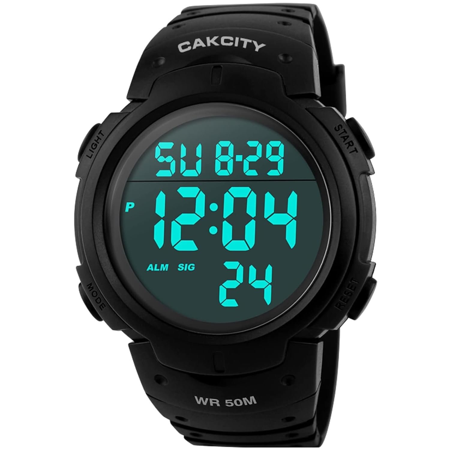 CakCity Mens Digital Sports Watch LED Screen Large Face Military Watches for Men Waterproof Casual Luminous Stopwatch Alarm Simple Army Watch
