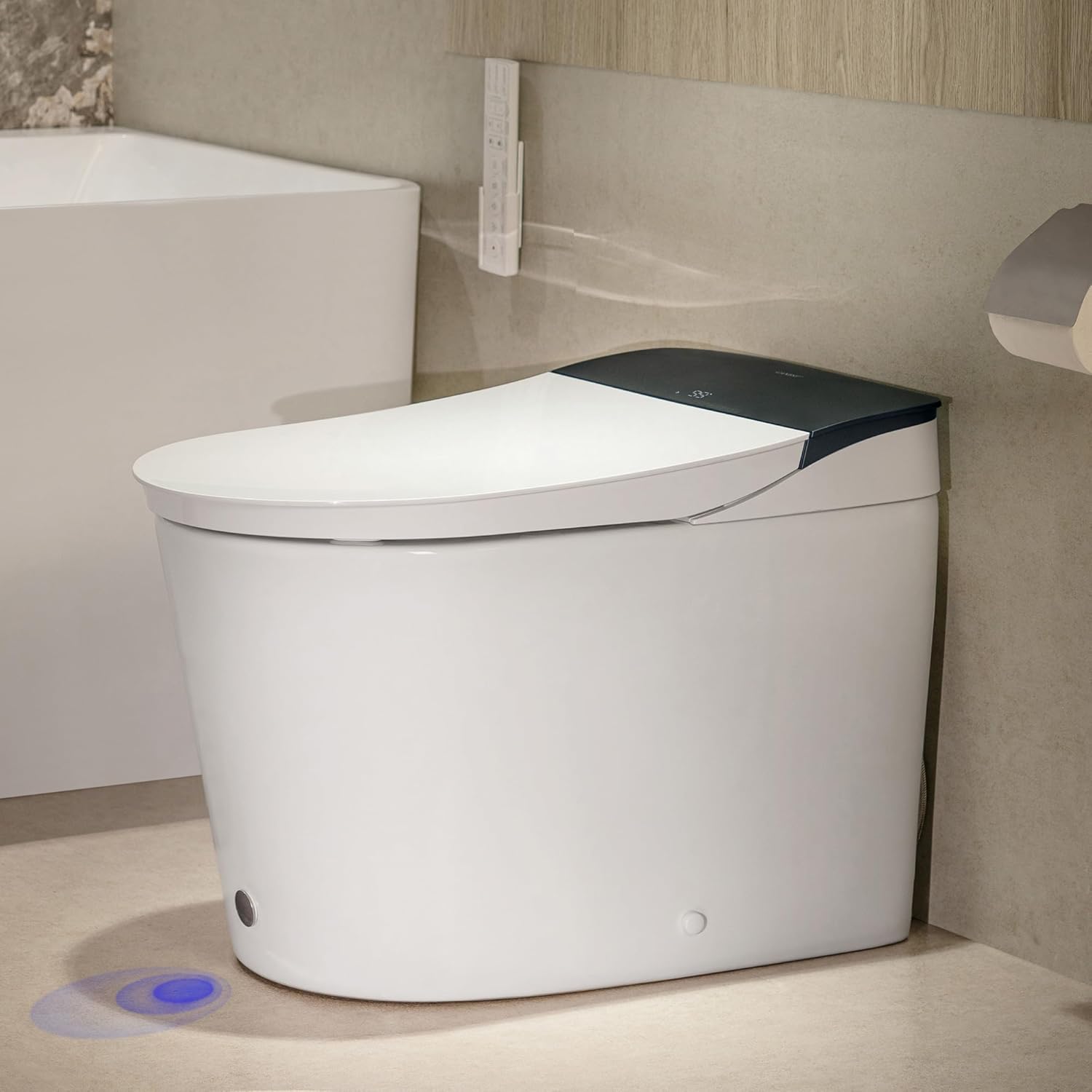 - Instant Warm Water with Self-Cleaning Nozzles: The bidet toilet delivers 0.1s instantly heated water combined with air-infusion technology, offering a gentler and more comfortable wash for both rear and feminine areas. The nozzles feature a top-pin self-cleaning design that keeps them clean before and after each use for a consistently fresh experience