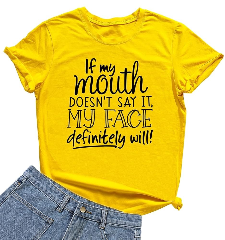 The DANVOUY Women’s If My Mouth Doesn’t Say It My Face Definitely Will T-Shirt is a stylish and comfortable addition to any wardrobe. Designed specifically for women, it offers a casual fit and is lightweight, making it ideal for everyday wear. Available since July 2019.