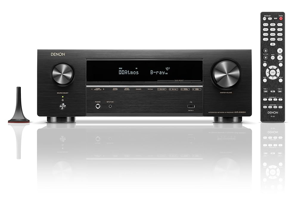 Experience immersive home entertainment with the Denon AVR-X1800 H 7.2 Channel AV Receiver, a powerful and versatile audio-video solution designed to elevate your media experience. Perfectly engineered for audiophiles and home theater enthusiasts, this receiver delivers 80 watts per channel to fill your space with rich, dynamic sound. Its sophisticated design and advanced technology make it an essential centerpiece for any modern home entertainment system. Equipped with built-in HEOS wireless streaming, Wi-Fi, and Bluetooth connectivity, the AVR-X1800 H allows seamless access to your favorite music services and multi-room audio setups, all with effortless control from your smartphone or voice assistant. Supporting the latest video formats including Dolby Vision, HDR10+, and Dynamic HDR, this receiver ensures stunning picture quality with enhanced brightness, contrast, and color accuracy for a truly cinematic viewing experience. With a 7.2 channel configuration, you can connect multiple speakers and subwoofers to create a fully immersive surround sound environment. The receiver also supports home automation systems, providing convenient integration and control within your smart home setup. Compact yet robust, its dimensions of 13.3 by 17.1 by 6 inches and a weight of 19 pounds make it a solid, reliable component built to last. Since its release in August 2023, the Denon AVR-X1800 H has been recognized for its exceptional build quality and performance. Included with the unit are two AAA batteries to power the remote control, so you can start enjoying your entertainment right away. Whether you’re streaming music, watching movies, or gaming, this Denon receiver combines advanced features, ease of use, and premium sound quality to transform your home audio experience. Elevate your entertainment space with the Denon AVR-X1800 H and discover a new level of audio-visual excellence.