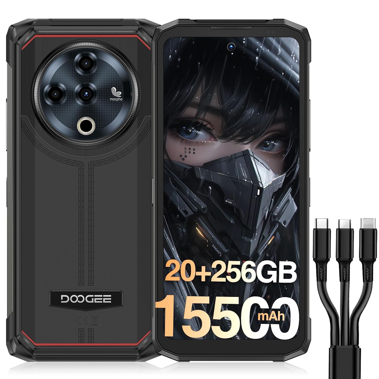 DOOGEE Fire 6 Power Rugged Smartphone, Dual Light Flashlight,15500mAh/33W Rugged Phone,20GB+256GB,50MP, Android 14, Unlocked Cell Phone with 3-in-1 Data Cable, Dual…