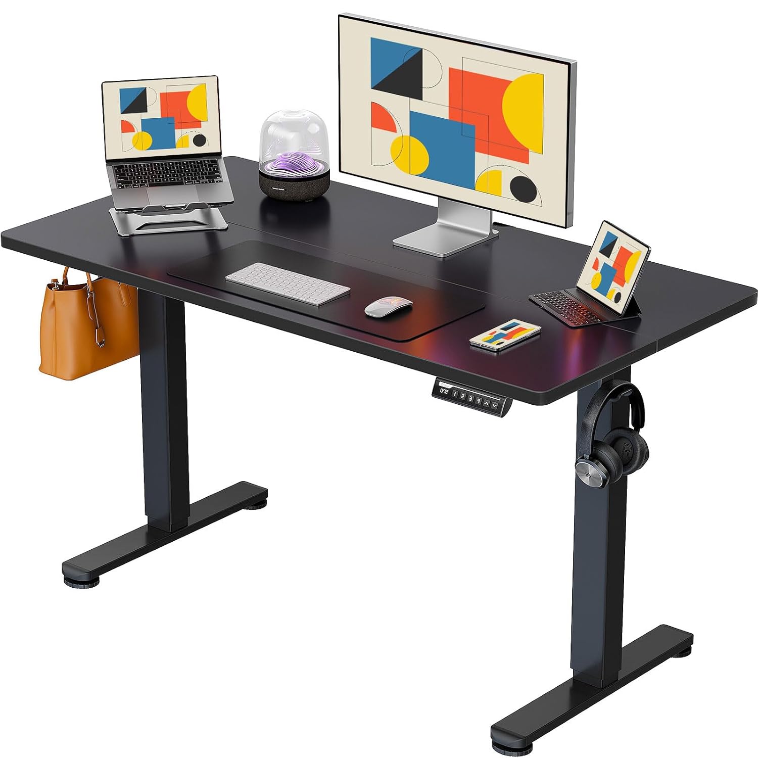 The Er Gear Electric Standing Desk offers a spacious 44 by 24 inch two-piece laminated surface with adjustable height from 28.3 to 46.5 inches, promoting comfort for gaming, working, or studying. Crafted with a sturdy carbon steel frame, it supports up to 176 pounds and features cable management and a headphone hook for an organized workspace. Easy to assemble and UL listed for safety, this sleek black desk transforms your home office with ergonomic efficiency.
