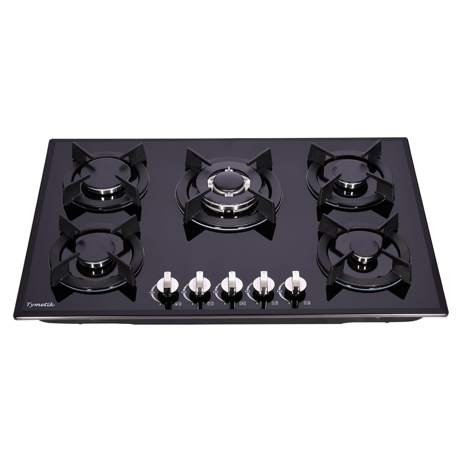 The Tymetik 30 Inch Gas Cooktop features a sleek tempered glass surface with five high-efficiency sealed burners. Designed for drop-in installation, it supports both propane and natural gas with a convenient convertible kit. This durable, dual-fuel stovetop combines modern design with reliable performance.