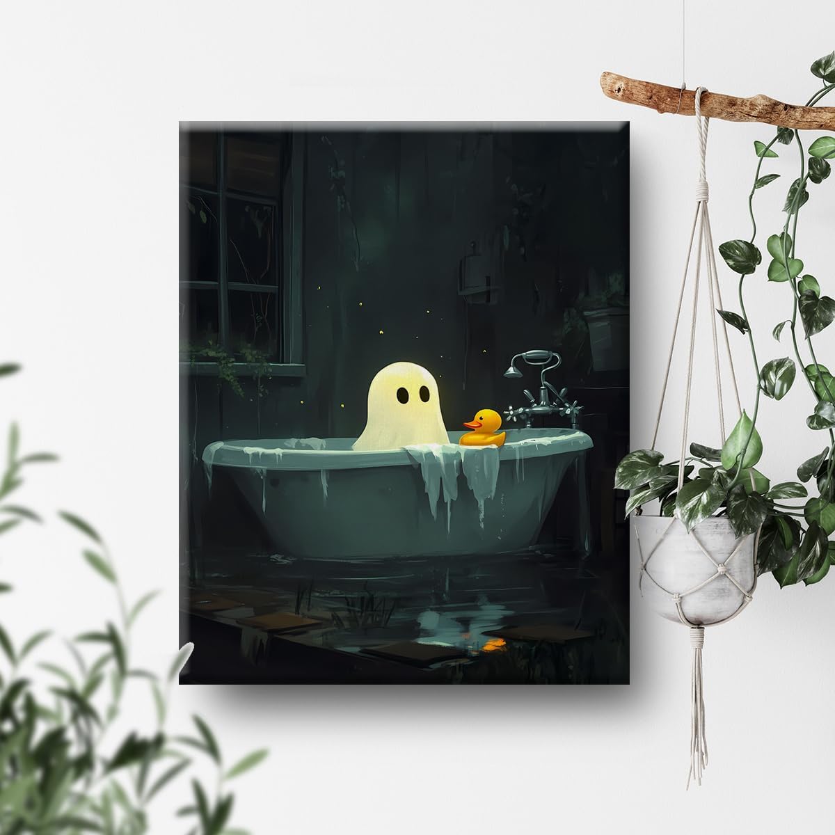 Gothic Bathroom Wall Art Ghost and Rubber Duck in Bathtub Funny Bathroom Artwork Print Spooky Restroom Decor 8X10 Inches