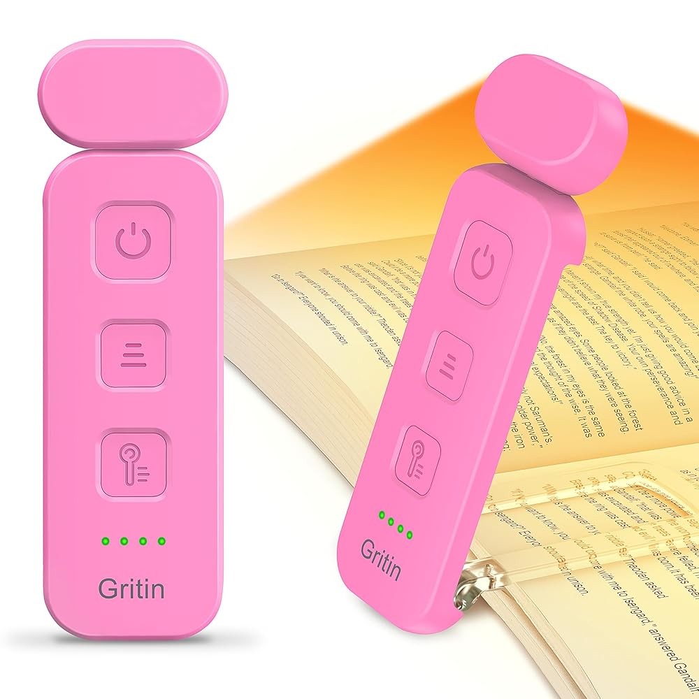 Gritin Reading Light, Rechargeable Book Light for Reading in Bed – Eye Caring 3 Color Temperatures,5-Level Dimmable Brightness,Long Lasting,Compact Size Clip on Book Reading…