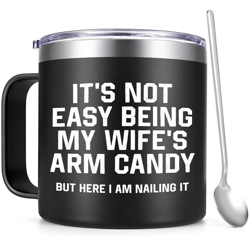 - SPECIAL GIFTS FOR YOUR HUSBAND: You care with this husband mug that lightens his day with its witty mantra, “It’s Not Easy Being My Wife’s Arm Candy.” It’s not just a mug; it’s a daily dose of laughter and a constant reminder of your affection.