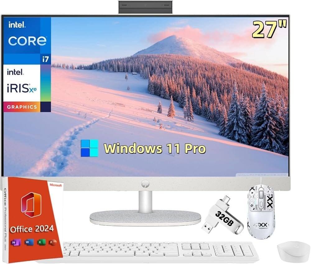 HP All-in-One Desktop Computer, 27″ FHD Display, Intel i7-1355U, 32 GB RAM, 1 TB SSD, Intel Iris Xe GPU, with Windows 11 Pro, Office 2024 Lifetime License & 32GB UFD, Wireless…