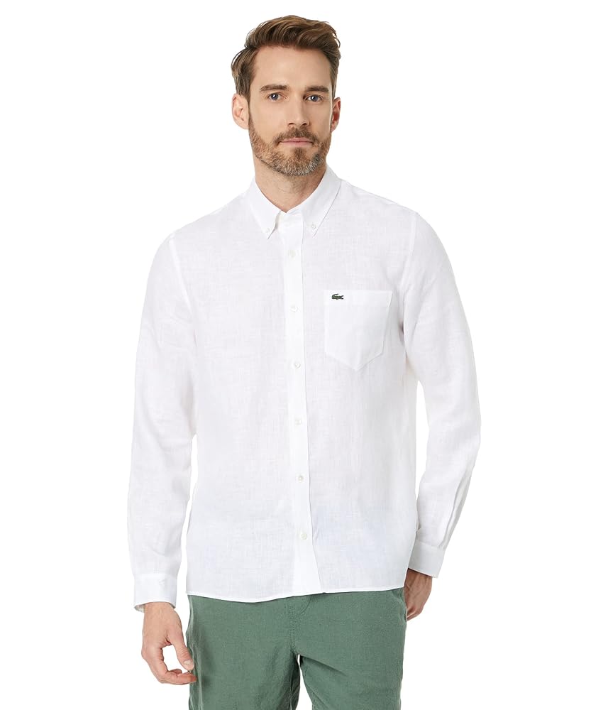 Lacoste Men’s Contemporary Collection’s Long Sleeve Regular Fit Linen Button Down Shirt with Front Pocket