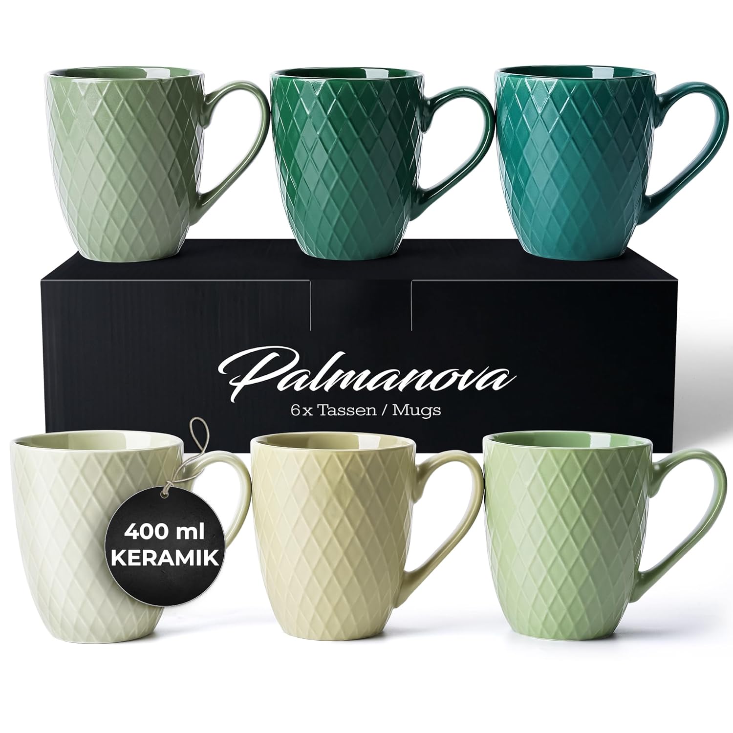 MIAMIO – Coffee Mugs set of 6 / Coffee Cups – 6 x 14 Oz Ceramic Mugs – Large Coffee Mugs – Microwave & Dishwasher safe – Palmanova Collection (Green)