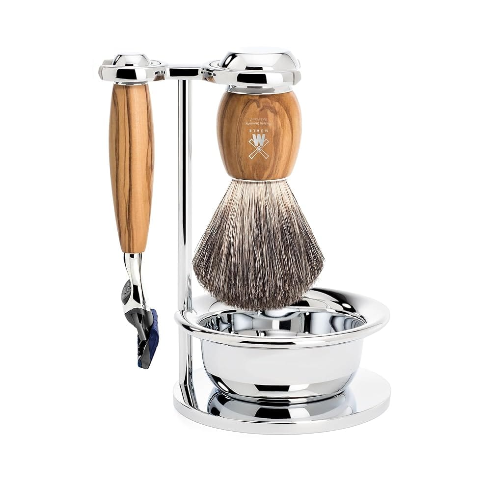 MÜHLE VIVO Olive Wood 4-Piece Pure Badger 5-Blade Razor Shaving Set