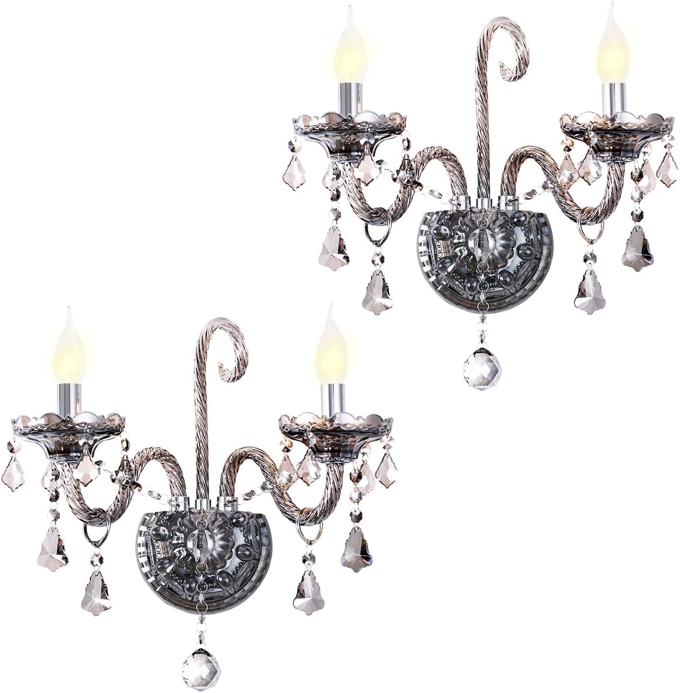 Retro Gray Crystal Wall Sconces Lighting, Elegant Crystal Wall Lamp Set of 2, European Style Chandelier Wall Lights Fits for Indoor and Outdoor Perfectly Decor of CRYSTOP (E12…
