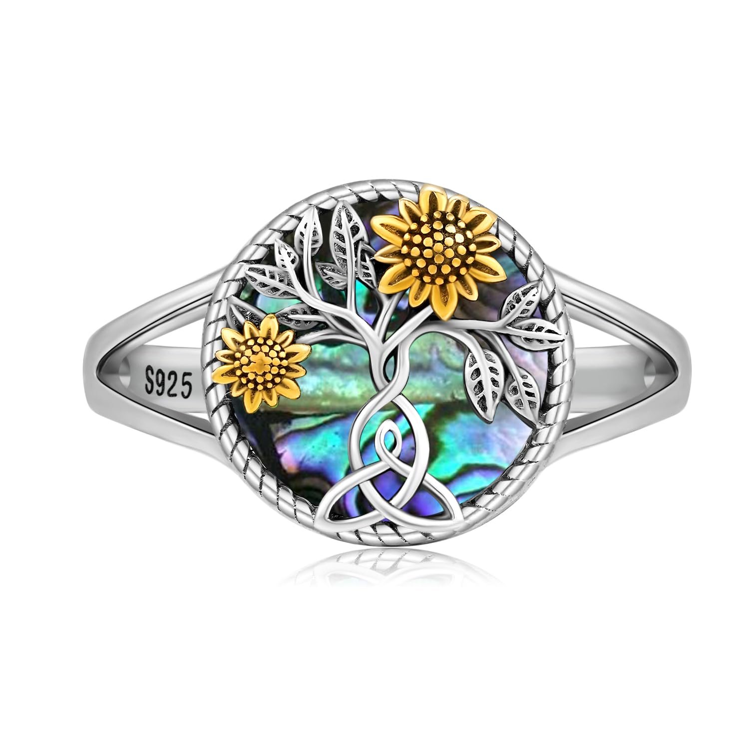 Sunflower Ring for Women 925 Sterling Silver Tree of Life Ring Sunflower Flower Jewelry Gifts for Mom