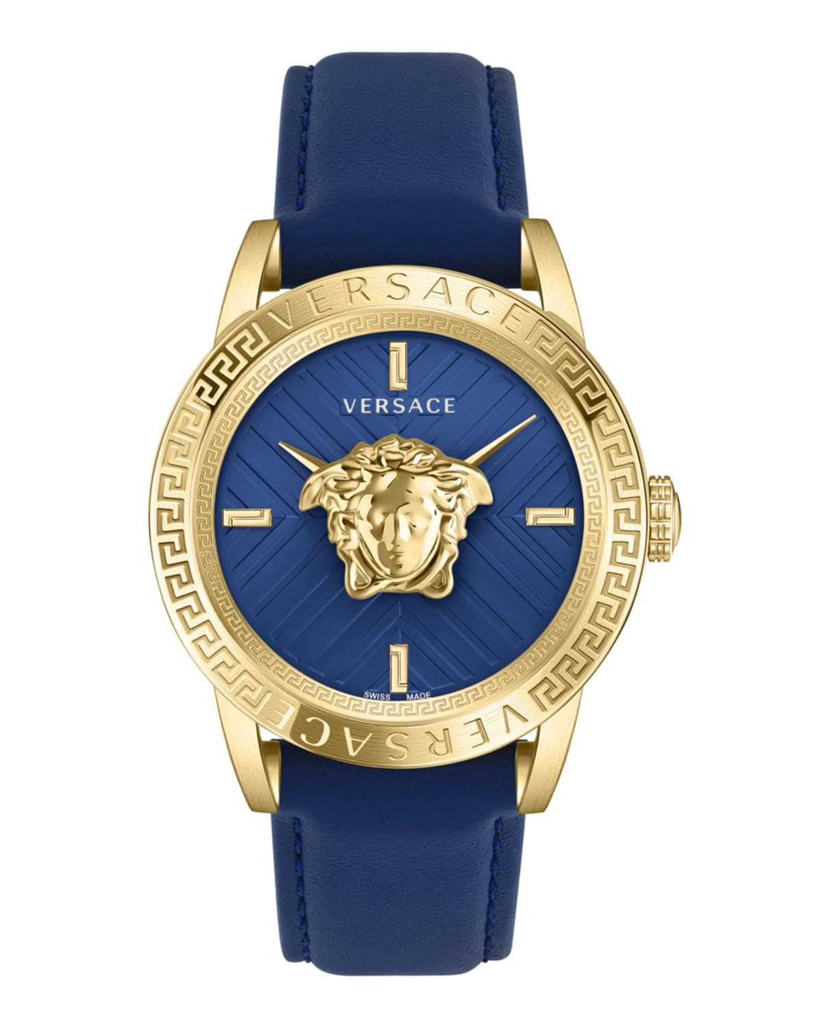 The Versace V-Code Collection Luxury Mens Watch is a masterful timepiece designed for the discerning gentleman who values both style and functionality. Featuring a striking blue strap and dial complemented by a sophisticated gold case, this watch embodies elegance and modernity while honoring Versace’s rich heritage. Crafted with meticulous attention to detail, the V-Code serves not only as a reliable timekeeper but also as a statement piece that elevates any ensemble, whether in a professional or social setting. Its ardillon clasp ensures a secure and comfortable fit, addressing the common challenge of watch stability and ease of wear. The 2022 model year reflects the latest in design innovation while maintaining timeless appeal, making it a versatile accessory that meets the demands of a dynamic lifestyle. By combining luxury aesthetics with practical functionality, this timepiece empowers users to present themselves with confidence and sophistication, reinforcing their personal and professional identity through impeccable style. The Versace V-Code is more than a watch; it is a symbol of heritage, precision, and enduring quality that enhances everyday life by seamlessly merging form and function.