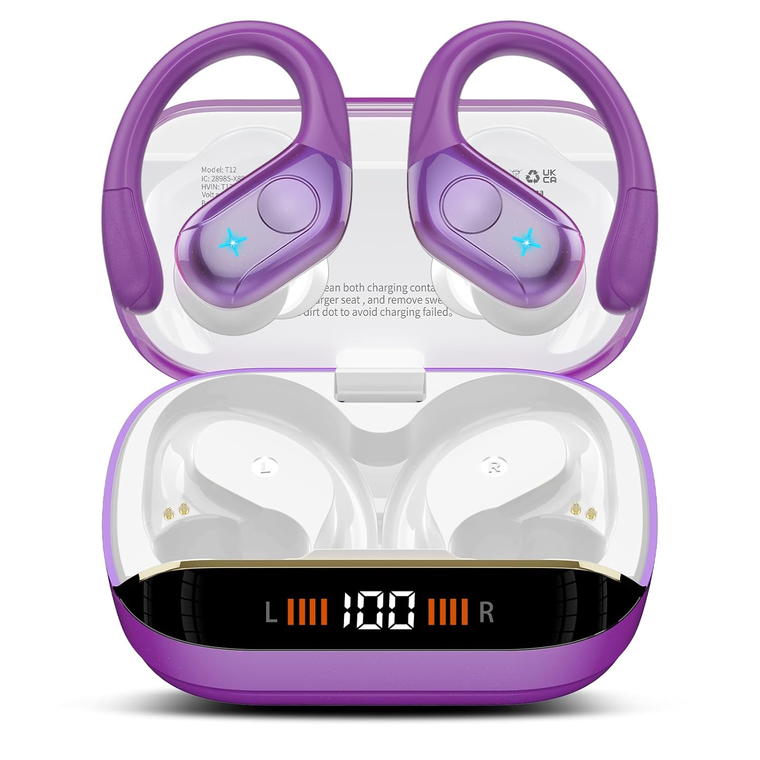- 75 Hours Playtime & Dual LED Display: These running headphones offer up to 15 hours of use on a single charge. With the fast-charging Type-C port, they fully charge in just 1.5 hours. When paired with the charging case, the total playtime extends to 75 hours. The dual LED display shows the charging case’s battery and earbud charging progress, keeping you informed at all times.