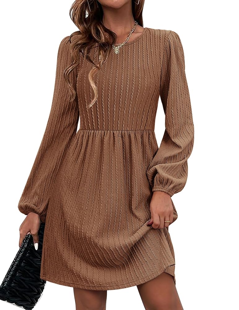 - 【Unique design】:Long lantern sleeve dress/Casual sweater dress/Women round neck dress/long sleeve Knit dress/womens Baby doll dress/ Women Knee Length dresses