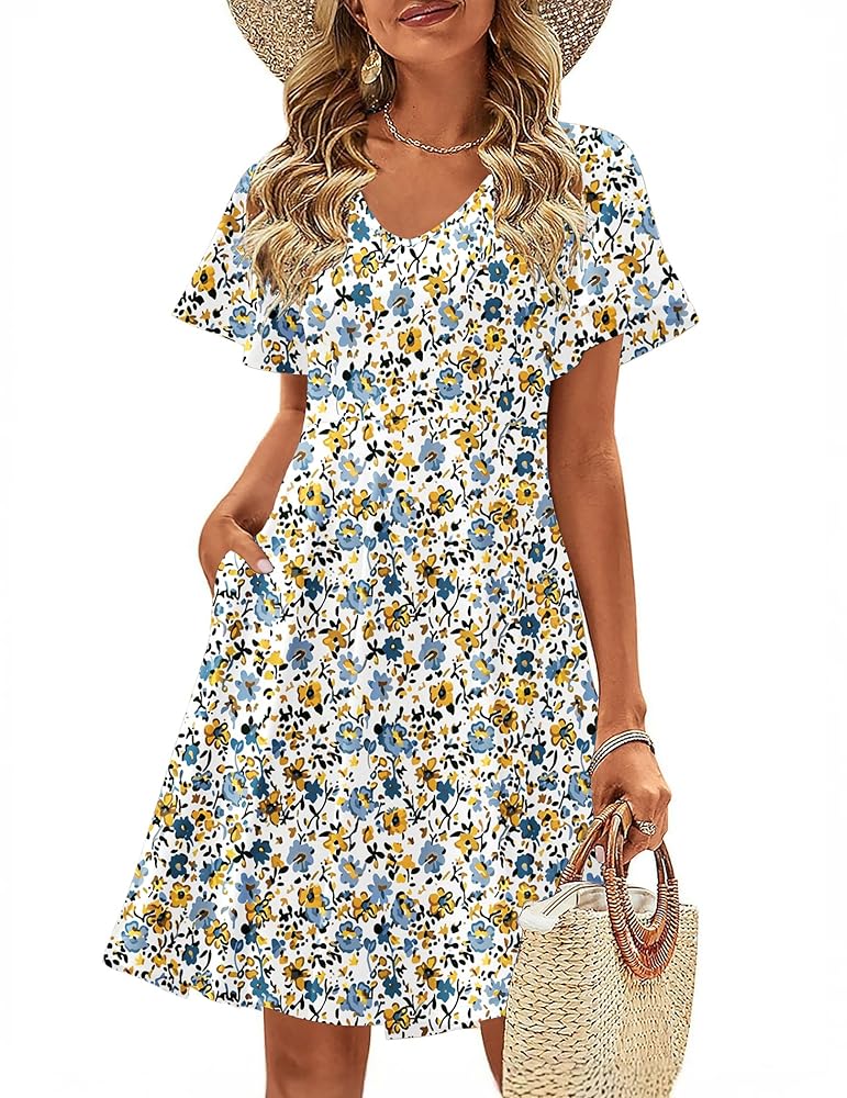 The Zeagoo Womens Summer Dress 2025 is a casual swing floral sundress featuring ruffle short sleeves and an A-line mini shift design. Lightweight and comfortable, it includes convenient pockets, making it ideal for beach outings and everyday summer wear.