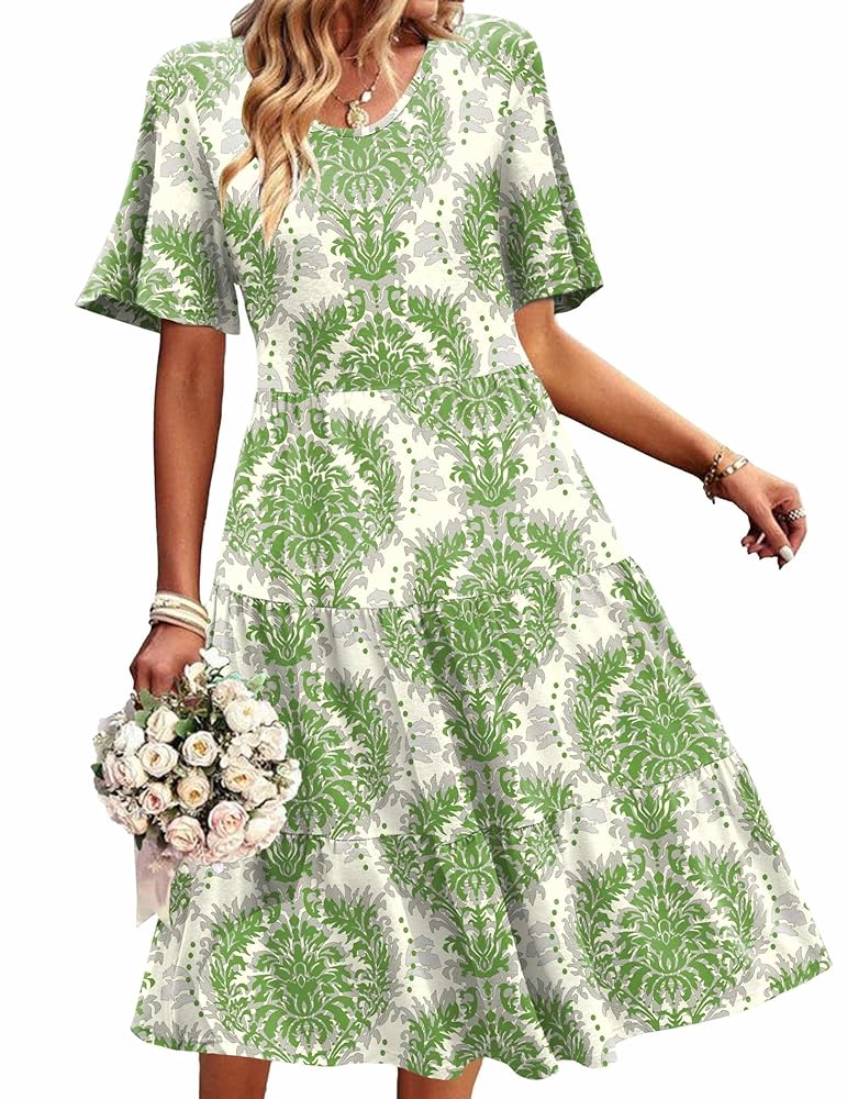 - 【Style】: Summer dresses for women, women’s casual dress, midi dresses, flutter short sleeve dress, flowy long dress, hawaiian dress, wedding guest dress, teacher dresses, fashion floral dress for women gives you an unique and trendy look.