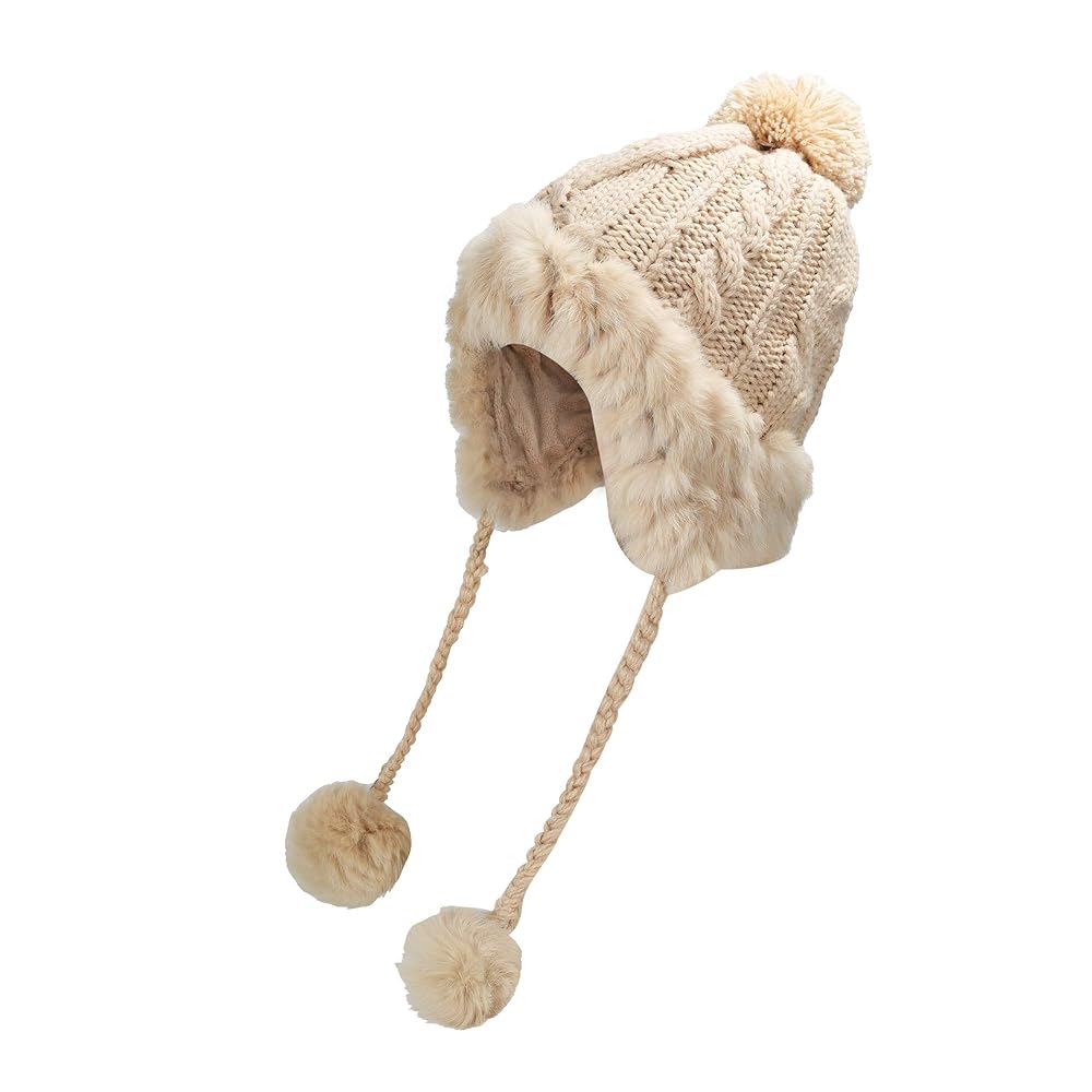 ZLYC Women Fashion Winter Warm Rabbit Fur Knit Bobble Beanie Cap Hat with Earflaps